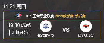 王者荣耀2019kpl秋季赛季后赛几点开打?稍后即将进行对战的是eStarPro战队和DYG.JC战队,下面是王者荣耀2019kpl秋季赛季后赛eStarPro和DYG.JC比赛指南,感兴趣的小伙伴们一起来看看吧。...
