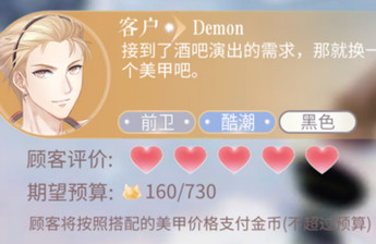 闪耀暖暖美甲玩法中玩家需要根据客户需求做美甲,那么闪耀暖暖美甲任务主题为Demon酒吧演出,要求前卫酷潮黑色的怎么获得5星评价?下面小编就为大家带来解答:...