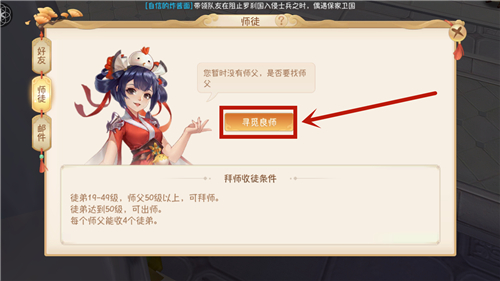 在鹿鼎记手游中,师徒系统是玩家之间建立羁绊的重要功能,那么在哪里可以进行收徒和拜师呢?今日光耀菌就为大家带来了拜师和收徒的方式,快来了解一番吧!...